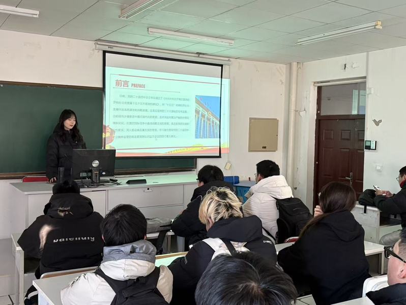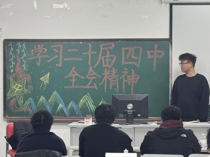 团课宣讲过程中,王国庆和学生代表聚焦全会提出的重大理论观点和战略部署,紧密围绕学院学科建设、人才培养与科研工作实际,系统阐释了党的二十届四中全会精神的核心要义与实践路径。会议强调,全体学生要把思想和行动统一到全会精神上来,始终坚持和加强党的全面领导,持续提升治理能力,切实把学习成果转化为自身学习动力,立志于投入到祖国建设和学校发展之中。