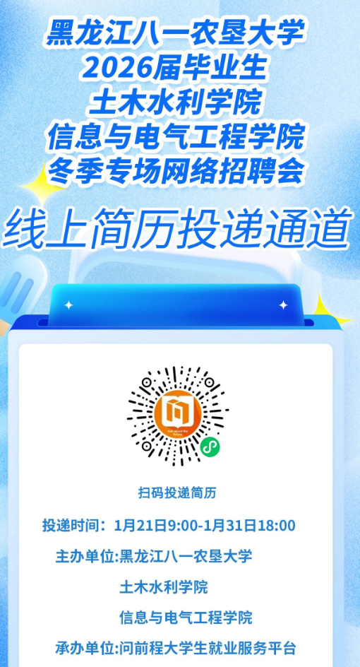 为深入贯彻落实教育部、黑龙江省教育厅及学校关于高校毕业生就业工作部署要求,抢抓寒假求职关键窗口期,学院聚焦毕业生急难愁盼,系统开展寒假暖心促就业系列专项行动。学院通过深化校企合作、搭建线上招聘平台、精准赋能选调备考三大维度协同发力,全力推动毕业生更高质量更充分就业。