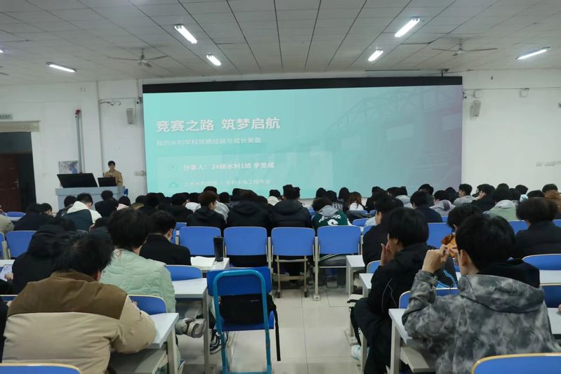 分享会上,三位主讲人结合自身参赛经历与成长轨迹,立足水利创新、结构设计与水利、土木类专业紧密相关的重点赛事,围绕可参与的竞赛类型、参赛报名与团队组建方式、所需知识储备与技能准备三个维度进行了系统阐述。同时,他们从选题策略、团队协作、时间管理到答辩技巧等多个方面,结合备赛过程中的实际案例,全面分享了从初涉竞赛到斩获佳绩的宝贵经验。在互动环节,三位主讲人结合自身经历,耐心解答了同学们提出的问题。